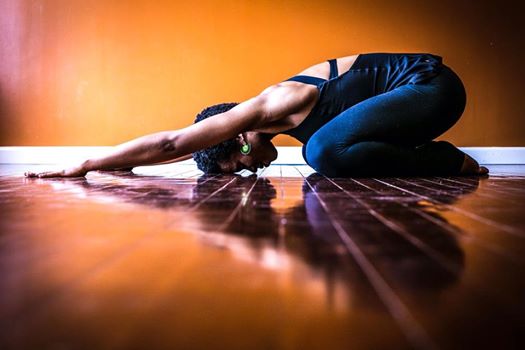 Bring your knees wide and your toes together to touch. Press your sit bones back to your heels and stretch your arms long in front of you. Feel the tops of your feet, your ankles and shins rooting down to the floor; root your palms and spread fingertips well. Breathe deeply through the nose, find a nice even pace to your breath and release your tongue from the roof of your mouth. Take an inventory of the body as you breathe, notice any areas that may feel tight (the inner thighs, the hips); send your breath there. Child’s pose is a wonderful restorative pose, it is calming and centering; Child’s Pose can be held for an extended period of time.